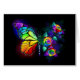 Arc en ciel, papillon monarque lumineux, artistiquement peint avec bouquet de roses irisés, lumineux, lumineux sur arrière - plan noir. Papillon arc-en-ciel.