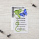 L'art présente un papillon bleu volant au-dessus d'une vigne à feuilles vertes. Peinture en aquarelle. Les coordonnées des cartes de visite de la date de jeu du papillon sur le recto de la carte indiquent le nom du parent et de l'enfant ainsi que les coordonnées de la mère ou du père. Customisez les cartes par courriel, téléphone, adresse et tout commentaire personnel concernant votre enfant. Le dos des cartes de visite de la date de lecture vous permet de personnaliser avec la photo de votre enfant. Les mots indiquent "Let's Play" et contiennent des champs vierges permettant d'écrire la date et l'heure de la date de jeu prévue. Tous les champs peuvent être personnalisés selon vos besoins ! Customisez ces personnages d'art de famille cartes de visite avec vos propres textes et images pour faire des cartes spéciales de lecture, ou d'autres cartes de visite personnalisés!