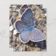 Gros joli papillon bleu clair sur gravier gris, petites pierres