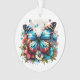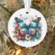 L'ornement de Noël personnalisé avec le nom et l'année avec un message personnel sur le dos. Joli papillon bleu et fleurs sur le devant.