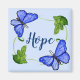 L'art présente deux papillons bleus volants au-dessus de vignes en feuilles vertes. Peinture en aquarelle. Customisez la police et les mots avec votre propre dicton ou nom personnel!