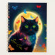 Un chat noir contre un arrière - plan au clair de lune, entouré de fleurs sauvages et de papillons, une atmosphère magique et tranquille dans des couleurs vives. (VEUILLEZ! - Voir aussi d'autres nouvelles collections pour plus de choix)