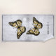 Profitez de votre journée à la plage ou au bord de la piscine avec une serviette de plage personnalisée Floral Butterfly Gold. Le design des serviettes comprend une paire de papillons vibrants reposant sur une vigne blanche à fleurs contre un arrière - plan gris clair. Autres cadeaux disponibles avec ce design ainsi qu'une variété de couleurs.