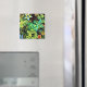 Des fleurs, un papillon et des feuilles brillent dans ce tableau coloré qui a été numériquement modifié.