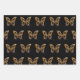 Papillon or sur feuilles de papier d'enveloppement arrière - plan noir