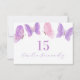 Carte de réponse aux papillons roses et violets. Tout le texte est modifiable. Thème Quinceañera.