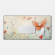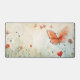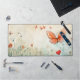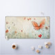 Il s'agit d'un élégant tapis de bureau pastorale peint en aquarelle avec des fleurs pastel, des papillons et un coeur rouge aux couleurs pastel.