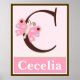 Papillon rose Lettre & Nom Poster d'Art Mur