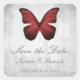 Mariage élégant et simple Enregistrer les stickers Date avec un Papillon rouge contre un arrière - plan gris grunge. Ce design est un choix unique pour annoncer un mariage moderne. Facile à customiser avec vos détails mariages. Cliquez sur "Customiser" pour trouver d'autres options de personnalisation.