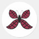 Papillon Rouge Stylisé Autocollant Rond Classique