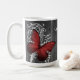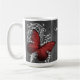 Savourez votre café ou votre thé avec une tasse de café personnalisée Red Rustic Butterfly. Le design de la tasse à café comprend deux papillons contre une vigne à feuilles blanches et un arrière - plan en bois gris foncé. Autres articles disponibles avec cette conception aussi. Contactez-moi directement pour obtenir de l'aide sur la personnalisation.