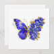 Bijoux, bleu, saphir, papillon aux fleurs pétillantes avec aile décorée de bleu, fleurs précieuses avec feuilles d'or sur arrière - plan blanc.