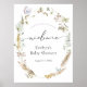 Bienvenue dans votre baby shower avec cette belle affiche, avec de l'herbe de pampas aquarelle et des bouquets de fleurs bleues séchées avec papillons. Ajoutez le nom de la mère et la date de la douche en utilisant les champs fournis.