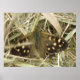 Cette belle affiche présente une photographie d'une espèce de papillon britannique appelée le Tacheté Bois (Pararge aegeria). Le papillon est assis sur le sol. Il a les ailes partiellement ouvertes révélant les ocelles et les jolies marques brunes et blanches qui donnent à l'espèce son nom.