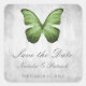 Mariage élégant et simple Enregistrer les stickers Date avec un papillon vert contre un arrière - plan gris grunge. Ce design est un choix unique pour annoncer un mariage moderne. Facile à customiser avec vos détails mariages. Cliquez sur "Customiser" pour trouver d'autres options de personnalisation.