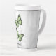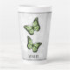 Profitez de votre café du matin ou du soir avec une Mug en latte personnalisée aux papillons verts. Le design de la moquette comprend une paire de papillons vibrants reposant sur une vigne florale blanche contre un arrière - plan gris clair. Autres cadeaux disponibles avec ce design ainsi qu'une variété de couleurs.