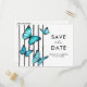 Moderne carte de sauvegarde de date. Papillons aquarelle bleue carte de mariage. Choix élégant pour les mariages d'été. Partie d'une collection de mariage. Carte avec choix de repas.