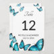 Papillons aquarelle bleue Carte de numéro de table de mariage. Choix tendance magnifique pour les mariages d'été. Fait partie d'une collection de mariage.
