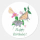 Éclairer les cadeaux avec des papillons colorés, fait en pointillisme, joyeux autocollants d'anniversaire. Le texte peut également être customisé sur le formulaire modèle.