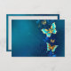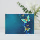 Or volant, papillon bijoux sur arrière - plan textuel bleu. Conception avec papillons.