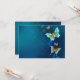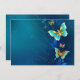 Or volant, papillon bijoux sur arrière - plan textuel bleu. Conception avec papillons.