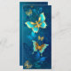 Or volant, papillon bijoux sur arrière - plan textuel bleu. Conception avec papillons.
