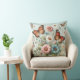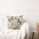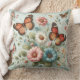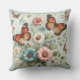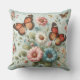 Voici un oreiller de lancer qui a un arrière - plan bleu clair. Il présente des papillons et des fleurs design.
