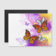 Orange, papillons monarques détaillés sur la lumière, violet, pittoresque, arrière - plan peint.