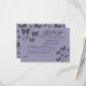 Cette belle et très élégante carte de mariage personnalisé à thème papillon RSVP est entièrement personnalisable. Il est composé de papillons violets et noirs clignotants. Il suffit d'utiliser les modèles à droite de l'image du produit ou de cliquer sur le bouton personnaliser pour personnaliser et en faire votre propre image.