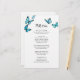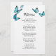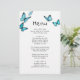 Bleu romantique et exotique de beaux papillons. Elégant menu mariage moderne.