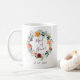Un cadeau chic pour le père du marié, une tasse avec une couronne d'aquarelle fleurie d'une magnifique palette de bordeaux, or, corail, vert roux et feuillus avec "bonne d'honneur" inscrit à l'intérieur en écriture manuscrite. Personnalisez avec votre date de mariage en dessous. Conçu pour s'adapter à notre collection florale Paprika bordeaux.