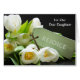 Carte de voeux de Pâques pour une fille. Ajoutez votre propre texte ou message à la couverture de la carte pour un accueil personnalisé. Photographie de tulipes blanches et d'un porte - clé vert clair avec une croix. Une vie tranquille pleine d'espoir avec Rejoice écrit sur le porte - clé en bois. Photo de Pixabay. Copyright © Shoaff Ballanger Studios.