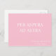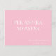 Une carte postale motivante avec la citation latine 'per aspera ad astra'. Une phrase populaire dans la Rome antique, la traduction est 'à travers l'adversité aux étoiles'. Le lettrage a une atmosphère classique évoquant les inscriptions publiques romaines et la traduction anglaise est dans une police contrastée. La carte postale typographique présente du texte blanc sur un arrière - plan rose.