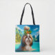 Echappez-vous au paradis avec cette fourre-tout en toile vibrante qui met en vedette Magnum the Shih Tzu dans un cadre tropical époustouflant. Avec ses montagnes verdoyantes, ses palmiers changeants et ses eaux cristallines en toile de fond, Magnum rayonne sur son topknot d'inspiration insulaire, orné de feuilles vibrants et d'une fleur d'orange vif. Idéal pour transporter des produits de base de plage, des épiceries ou des articles de tous les jours, ce fourre-tout allie fonctionnalité et design enchanteur qui célèbre la beauté des destinations tropicales et le charme adorable de Magnum. Ajoutez une petite bouffée de vibes d'îles à votre journée avec ce fourre-tout à pattes, parfait pour les amoureux de les chiens comme pour les rêveurs tropicaux !