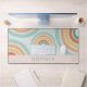 Ce mignon tapis de bureau en boho présente un design abstrait coloré avec des tons roses et bleus. Le mat moderne dispose également de l'espace pour ajouter un nom en bas, et vos initiales en bas à droite.