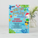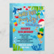 Customisez vos propres invitations pour fêtes d'anniversaire de parc aquatique pour les garçons et les filles avec un dessin de requin et d'ananas.