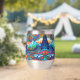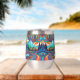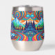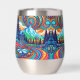 L'art de l'Ai représente un parcours à disques colorés dans les montagnes et les pins en bleu, orange et vert.