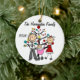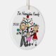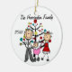 Assez autour de l'ornement en céramique de vacances de Noël de souvenir comporte un chiffre de bâton papa, maman, et bébé dans un chariot rose devant l'arbre et les régions de Noël décorés où vous pouvez ajouter le texte comprenant l'année en cours et le nom de famille. C'est un cadeau adorable pour que n'importe quelle famille commémore l'année !