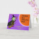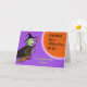 Parents, Spoil Me Rotten Happy Halloween papier carte de voeux. Sorcière de dessin avec une potion spéciale orange vole dans le ciel et répand un peu de gaieté d'Halloween. Copyright © Shoaff Ballanger Studios.