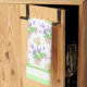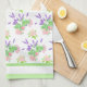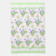 Jolie serviette de cuisine, ou serviette de thé, avec un motif de Roses roses, Faux Orange Blossom blanc crémeux et Lavande violette avec une bordure verte et blanche, d'une aquarelle peinte à la main par Judy Adamson. Vous pouvez changer l'arrière - plan blanc en une couleur différente si vous le souhaitez.