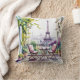 Paris Balcon Vue Tour Eiffel Coussin aquarelle