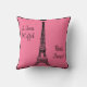 Ooh la la ! Un bel oreiller à jetons d'inspiration française se décline dans les tons rose parisien et noir profond. Illustration de la Tour Eiffel, avec les mots Le Tour D'Eiffel, et Paris, France. Les coussins sont disponibles en plusieurs tailles, formes et tissus.