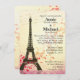 Ambiance douce et romantique avec des couleurs pastel crème et rose avec des coeurs criblés dans le arrière - plan. L'aspect vieillot mais élégant pour la mariée d'aujourd'hui. La tour Eiffel est idéale pour les mariages à thème français ou français. Éditez facilement pour votre propre faire-part de mariage. Montrez vos invitations en style!