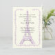 Paris mariage Tour Eiffel invitation violet clair. Un design élégant et raffiné, avec la Tour Eiffel dans le violet clair, en bordure damassée d'arrière - plan d'ivoire.
