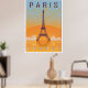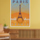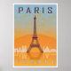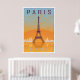 Paris vintage poster in orange and blue textured background with skyiline in white