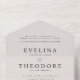 Cette faire-part de mariage présente un design élégant et formel, parfait pour une cérémonie sophistiquée. L'invitation présente une esthétique minimaliste, avec des lignes épurées et un accent mis sur la typographie. Les noms sont affichés en évidence dans une police serif classique, donnant un air de grâce intemporelle à la pièce. L'utilisation d'une simple esperluette ou "à" entre les noms ajoute une touche de simplicité moderne. Le texte est joliment arrangé sur un arrière - plan en papier texturé, ce qui améliore l'apparence formelle globale. Le bas de l'invitation comprend un script de signature de bon goût, indiquant une touche personnelle. Ce modèle, conçu pour un mariage dans un jardin botanique, allie tradition et élégance contemporaine, ce qui en fait un choix idéal pour les couples à la recherche d'une invitation raffinée et élégante.