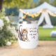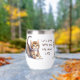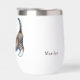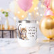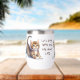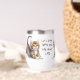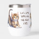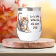 Ce verre à vin a deux images d'adorables chatons rayés à table. Le texte marron entre les images dit "Buvons du vin et parlons de CATS". Un côté a aussi votre nom ou monogramme en marron assorti.