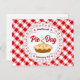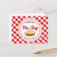 Célébrez la Journée de la tarte, le 23 janvier, délicieuse fête nationale américaine, mangez une délicieuse friandise sucrée fraîchement cuite, nappe à motif à carreaux rouge et blanc et dessous de plat en dentelle à œillets. Personnalisez le texte pour votre carte postale.