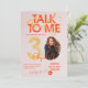 Conçu pour notre collection d'Affiches de bienvenue Talk Thirty To Me 30th Birthday, cette carte d'invitation personnalisable comprend des polices personnalisables de photo et de décoration. Éléments correspondants disponibles.