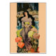 Une dame aux cheveux noirs est assise parmi les chrysanthèmes. Impression Art nouveau vintage